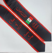 You control how simple or elaborate the stole sash will be. You can add: Satin border, Sparkle Glitter text or Embroidery, sequin trim, scattered rhinestones, graphics or custom school logos, extra text on upper or lower areas, back of neck text. You can also add a custom color printed photo to your stole.