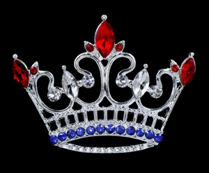 cp-20 Red White Blue King Queen Rhinestone Crown Sash pin brooch